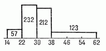 Гистограмма - (от греч. histos, здесь - столб и ...грамма), столбчатая диаграмма, один из видов графического изображения статистического распределении каких-либо величин по количественному признаку. Г. представляет собой совокупность смежных прямоугольников, построенных на прямой линии. Площадь каждого прямоугольника пропорциональна частоте нахождения данной величины в изучаемой совокупности. Пусть, например, измерение диаметров стволов 624 сосен дало следующие результаты: